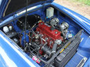 An extensive £24,000 restoration addressed significant bodywork repairs, with multiple panels and sections replaced, all documented in a detailed photographic record. Corroded areas were meticulously removed and replaced with fresh metal, including brand-new floors. With the engine removed and the bay stripped, the body was carefully prepared and refinished in striking Mineral Blue.