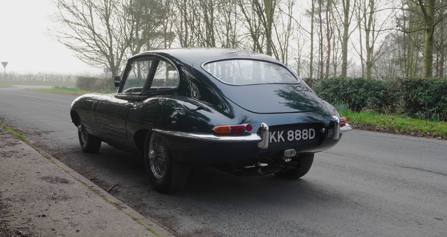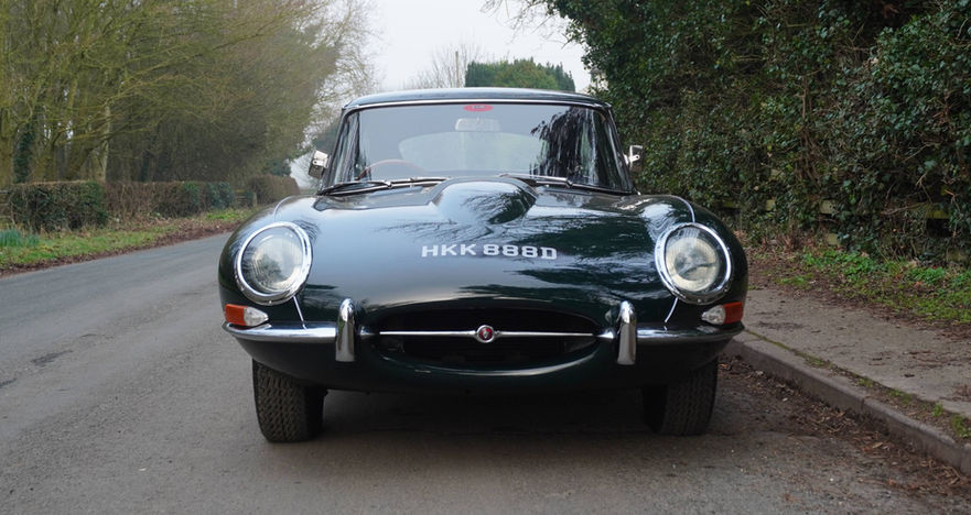 HKK 888D is a UK home market Jaguar E-Type Series I 4.2 Two-plus-two Coupe that was built on the 28th of June 1966. Still retaining its original engine, the E-Type originally left the factory with Automatic transmission and was later converted to the more desirable four speed, all synchromesh manual gearbox. The E-Type was supplied new in Opalescent Dark Green with Suede Green leather trim and was distributed out of Henlys London and supplied new by Haynes Bros to its first owner Mr H E Kettle. The car was first registered on the 21st of July 1966 with the Kent registration mark HKK 888D.