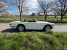 Manufactured on 12th October 1970, the car was first supplied through the Triumph Management Car Plan by Triumph dealer in Allesley, Coventry. This right-hand-drive, original home-market example retains its original VIN, engine, body, and registration numbers. Factory specification included New White paintwork, black interior trim and hood, heater, laminated windscreen, wire wheels, black tonneau cover, Dunlop SP Sport tyres, petrol injection, overdrive, seatbelts, wing mirrors, and a radio.