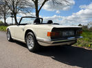 Today, this TR6 presents beautifully as a well-maintained older restoration. The chassis remains strong, panel gaps are good, and the paintwork is very well presented, retaining a sharp finish with only minor age-related blemishes. The white bodywork is complemented by a black pinstripe and black TR6 rear quarter panel decals.