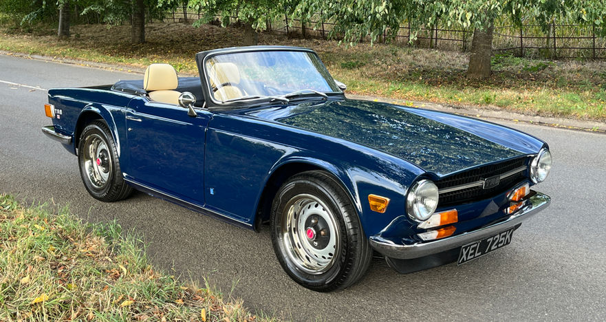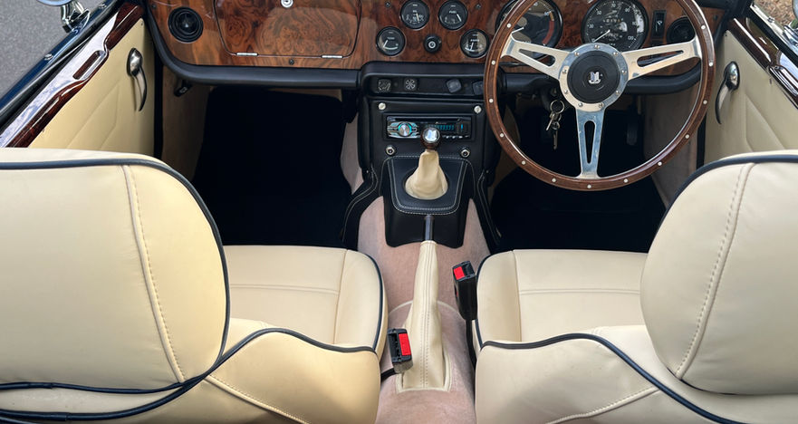Now finished in striking Sapphire Blue and complemented by a beautifully retrimmed cream nappa leather interior with walnut veneer detailing, this TR6 is every inch the head-turner – elegant, purposeful, and unmistakably sporting.